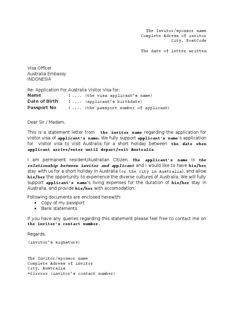 Templates for the visa invitation letter can be downloaded right here for your convenience in word and pdf format. Invitation letter for visa this letter is for a person who lives in one country and gets invited to visit in another country. I'll highlight some letter templates you may need and other necessary details. Letter of invitation from the inviter in the country of destination or a letter of intent stating the purpose of your trip. Invitation letter from family or friends for tourism purposes.